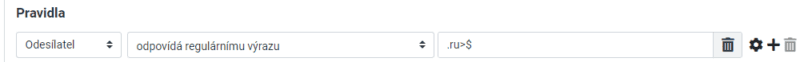 Pokud potřebujete např. zablokovat či povolit průchod emailů jen z konkrétní domény, je nutné nastavit pravidlo. Pro doménovou koncovku .RU bude pravidlo vypadat takto: