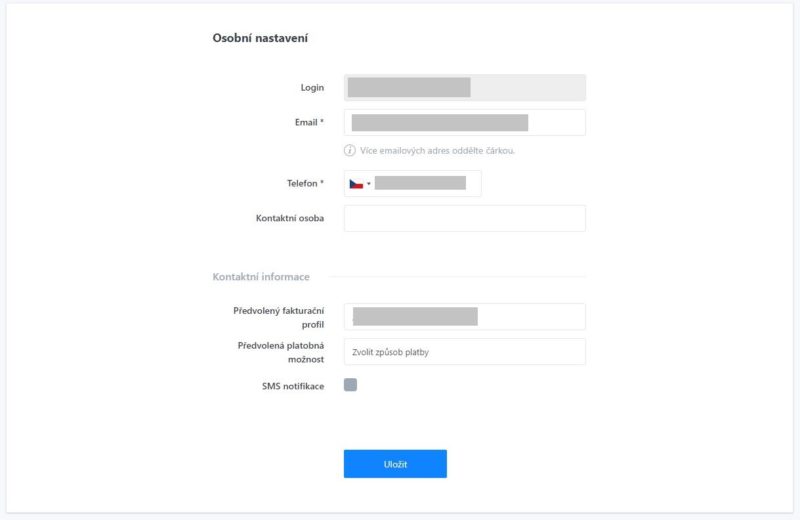 Kontaktní údaje – telefonní číslo a kontaktní e-mail byste měli udržovat stále aktuální, protože oba údaje slouží na identifikování uživatele jako majitele služeb.