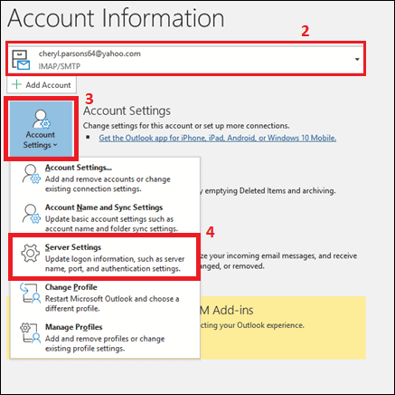 - V rozevíracím seznamu v části Informace o účtu vyberte účet, který chcete změnit.